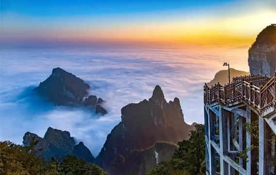- 8.天门山国家森林公园 自2023年11月6日起,穿山扶梯(上段和下段)检修维护,扶梯交通线全线停运。停运期间,景区仅销售A 线游览套票,票价不变。游览交通路线调整如下:自天门山索道下站乘索道上山一一山顶游览一一乘天门山索道下行至索道中站一一换乘景区中巴车至天门洞游览一一乘天门洞快线索道下山一一经风雨廊通道步行出山门一一乘摆渡车返回下站。扶梯停运预计超过 30 天,恢复时间视施工进度另行通知,敬请谅解。